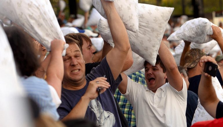 А особенно популярным это времяпровождение является в США. В Колумбийском университете даже есть традиция, когда студенты в день перед сессией бьются подушками, чтобы снять напряжение.