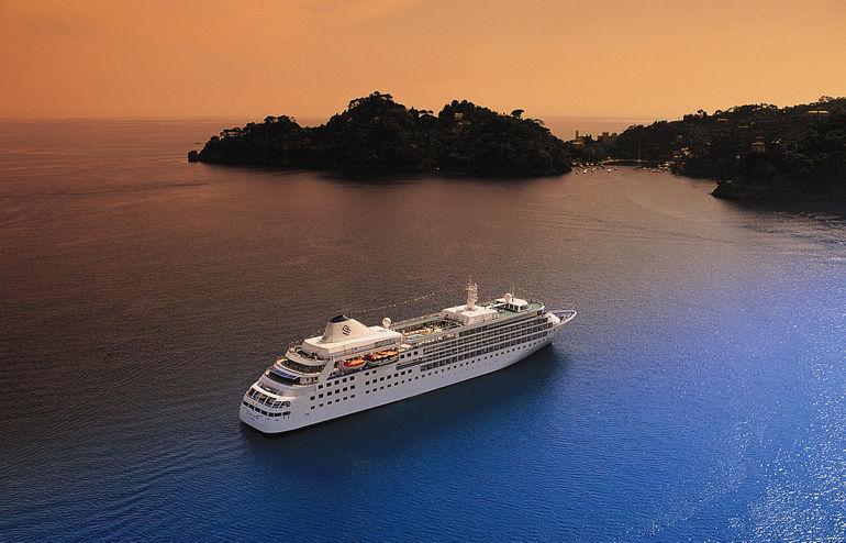 Длина лайнера составляет около ста девяносто метров в длину. И всего на нем находится около десяти этажей. А поскольку лайнер небольших размеров, то он может заплывать в самые узкие места на островах.